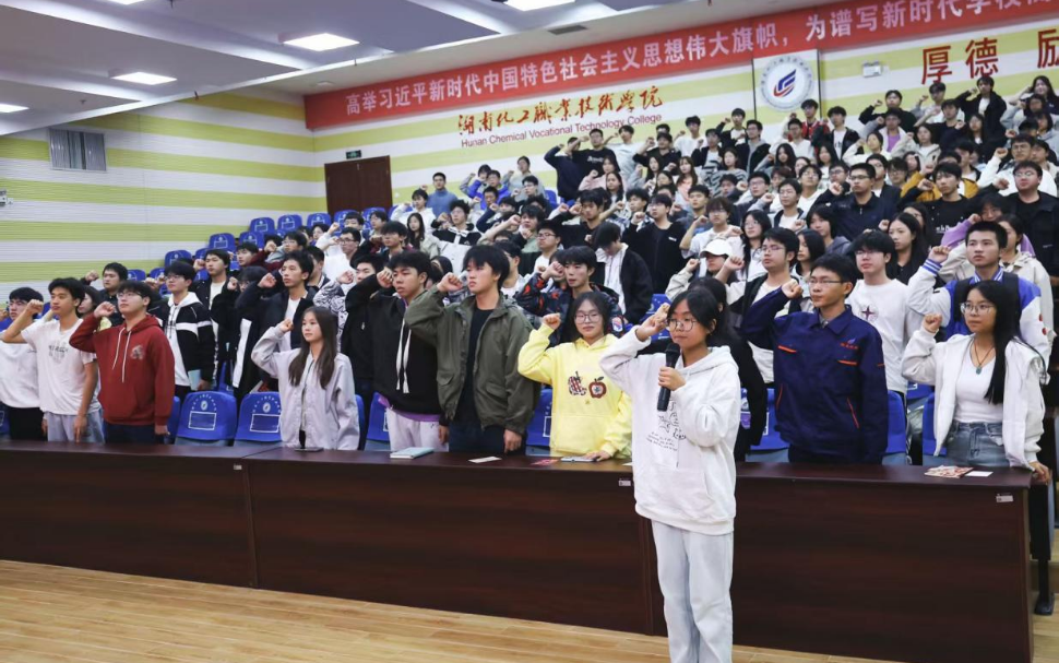 应用化工25101班何心远同学结合自身自考学习的亲身经历,从时间管理、学习方法、心态调整等方面分享了实用经验。药学25104班曾娜嘉同学作为新生代表承诺珍惜机会、勤学好问,以实干践行目标。随后,全体新生在石油化工技术专业25101班向明珠同学带领下进行了集体宣誓,表达了势必达成的决心。