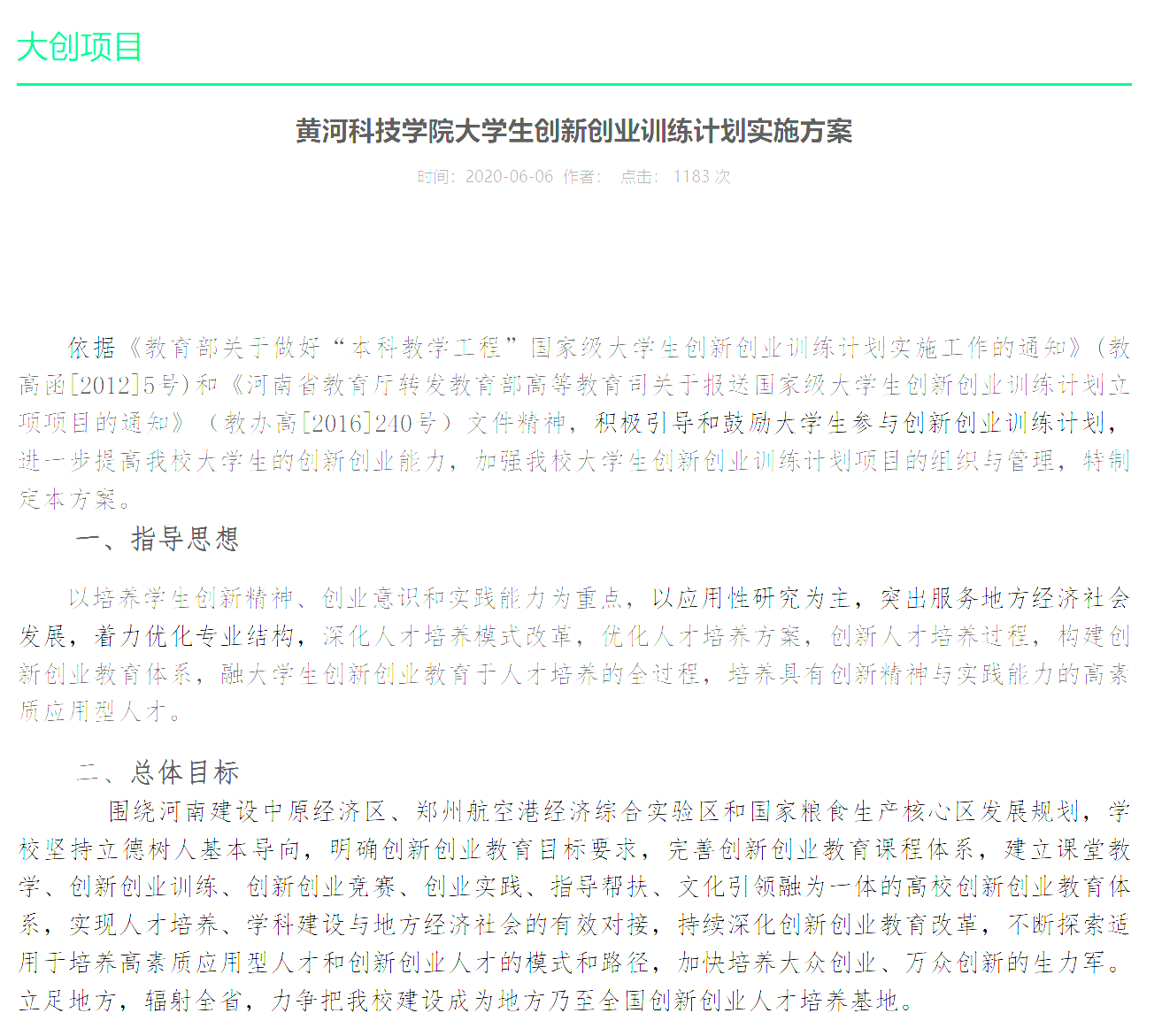 1.大学生创新创业训练计划纳入黄河科技学院本科专业人才培养方案,申报时应填写《黄河科技学院大学生创新创业训练计划项目申请书》,二级学院对本院学生的申请课题进行初选后,向校领导小组办公室提交初选名单和申请材料。
