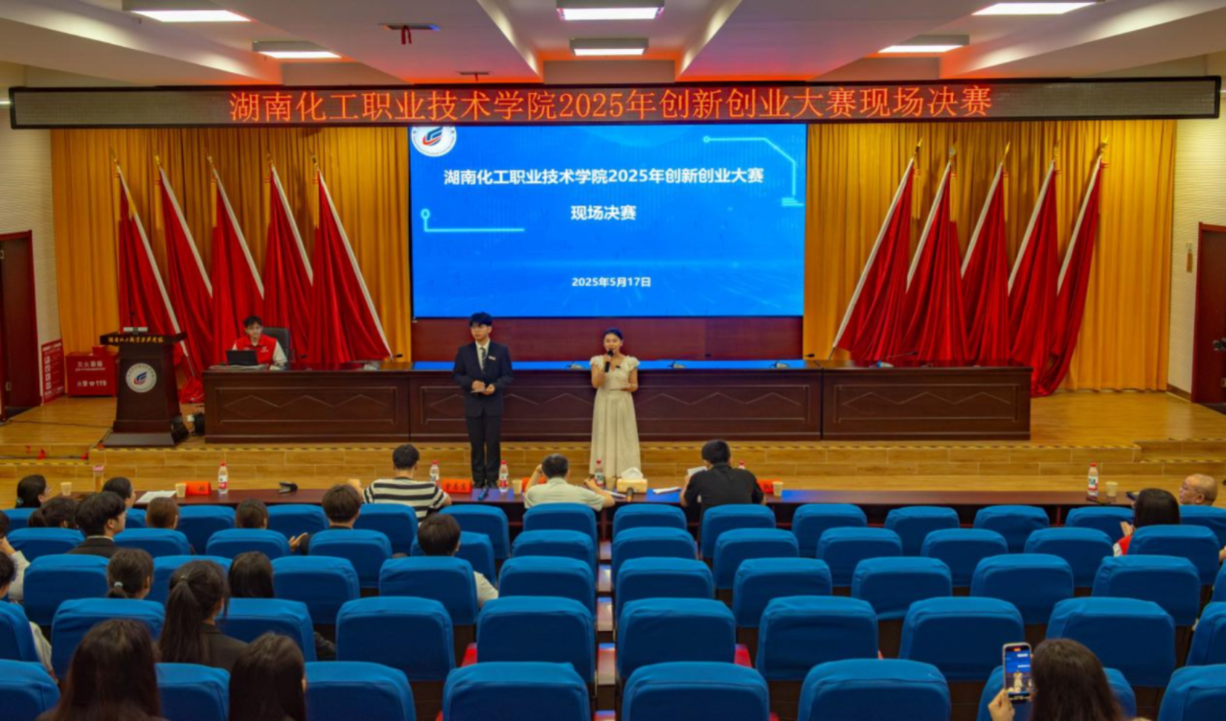 5月17日,我校在图书馆一楼2号报告厅举办了2025年湖南化工职业技术学院创新创业大赛现场决赛。各二级学院初赛选拔的22个项目及10个校级重点遴选项目共32支队伍参与角逐,大赛特邀三位校外资深专家担任评委,副校长刘艳出席并致辞。