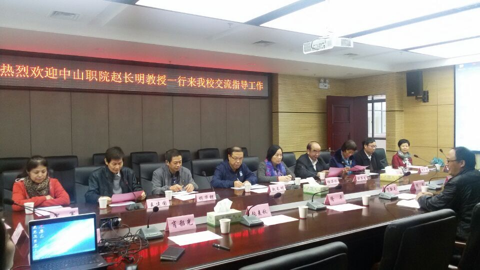 赵长明教授介绍了广东中山职业技术学院的教学督导情况,之后,与我院到会的教学督导员周剑教授、肖爱武副教授、龙朝副教授、吴子红副教授进行了热烈而友好的交流。