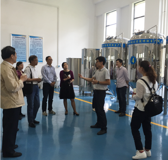 接着,实地参观了我校制药与生物工程生产性实训基地、化工生产与检测技术特色专业群生产性实训基地。对啤酒生产车间以“啤酒”为载体,让学生在“做中学,学中做”来增长专业素质和技能,车间6S现场管理和和理实一体化多媒体教室呈现教学内容的虚实结合的理念非常认同。对GMP实训车间的标准设计,集学生实训、社会培训、职业技能考证、竞赛、科研等多种特色于一体的庞大功能给予赞许。对化工综合生产实训中心的化工产品中试车间煤制甲醇仿真工厂的工厂情景化、操作实际化、控制网络化、故障模拟真实化的实现现场就地控制和远程DSC中控控制的教学模式表示由衷赞叹。