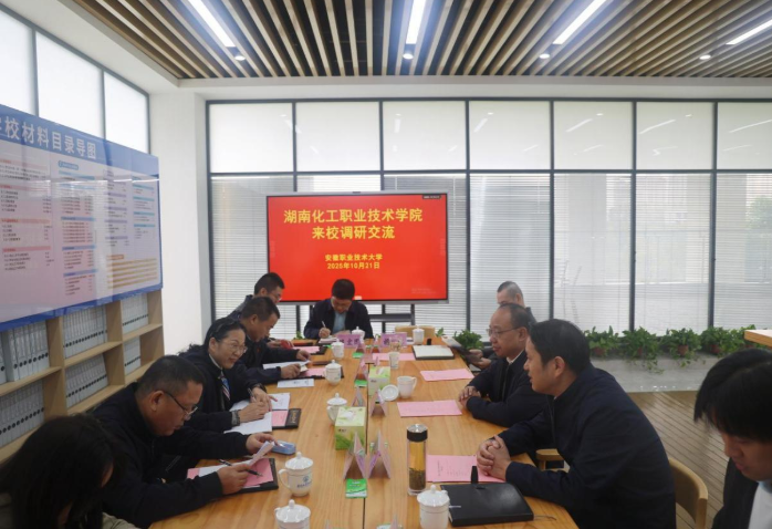 10月21日,学校党委副书记、校长隆平带队赴安徽职业技术大学,开展调研交流。副校长田伟军、副校级领导陈湘伟,以及党政办、学生工作部、发展规划处、教务处等部门相关同志一同随行。