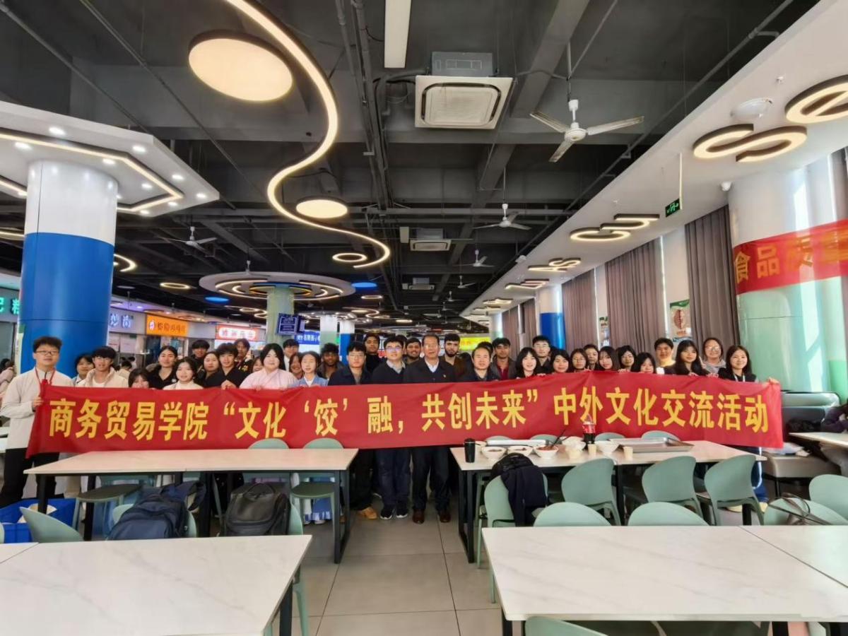 12月19日,商务贸易学院在一食堂一楼举办“文化‘饺’融,共创未来”中外文化交流活动。学院领导班子、师生代表及留学生共同参与。