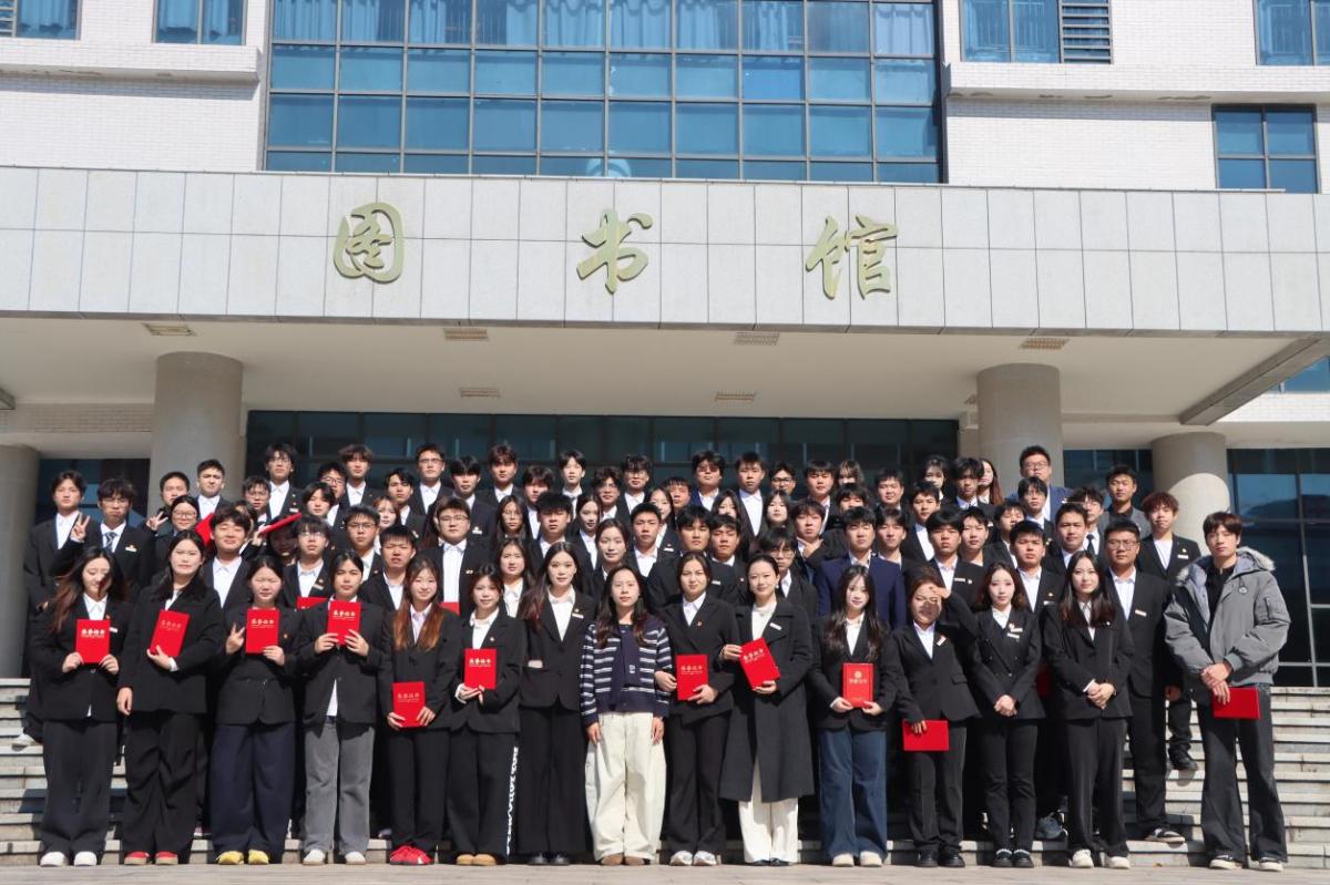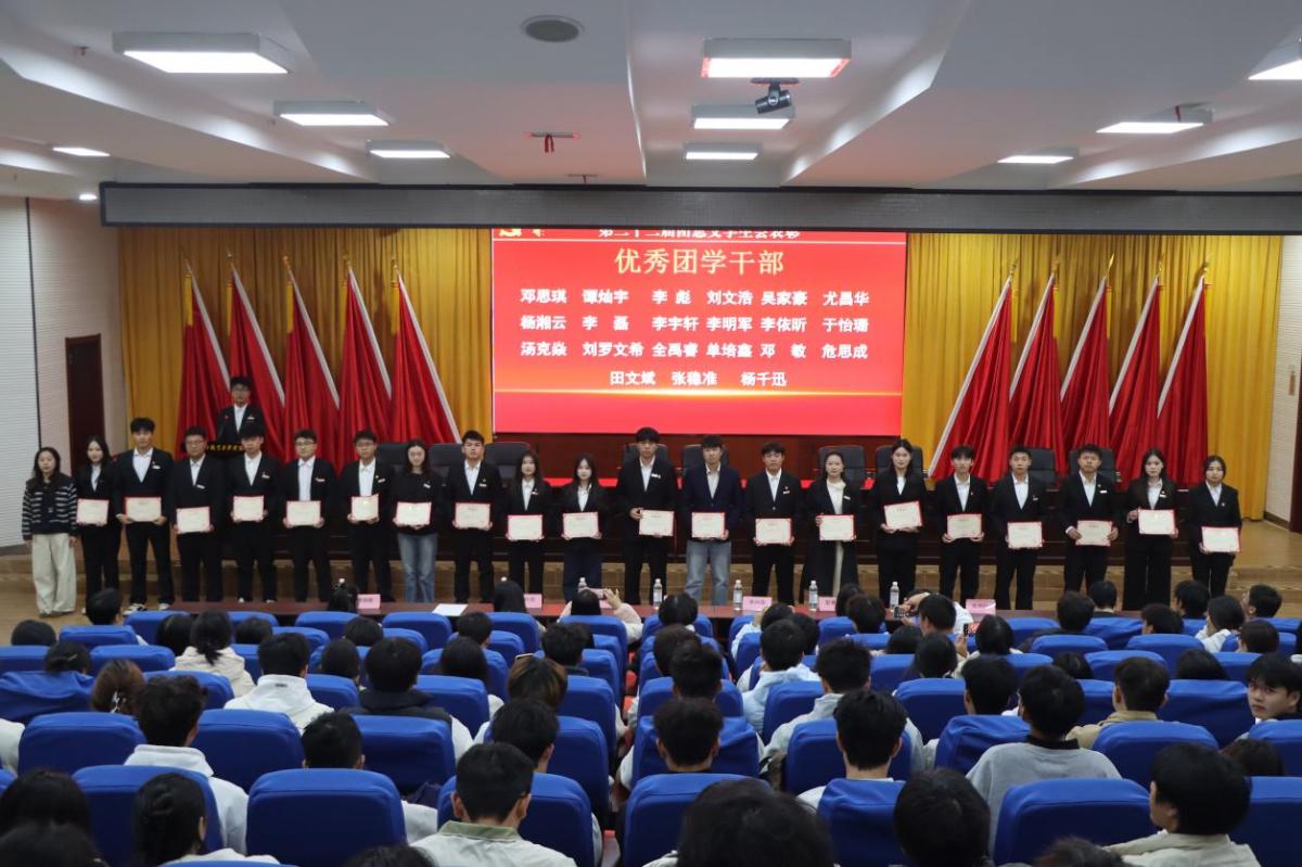 表彰环节暖意融融。帅澜婷为谭灿宇等41名“优秀团学干部”颁发荣誉证书,肯定他们过去一年团学工作的担当与奉献。紧接着,宣读第二十三届团学干部成员名单,随后新一届团学干部成员上台宣誓,铿锵誓言彰显接过责任接力棒的坚定决心。