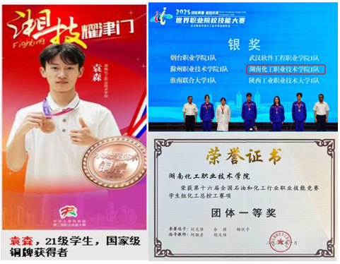 学生曾连续三年荣获全国职业院校学生技能竞赛化工生产技术赛项一等奖,并在世界技能大赛水处理赛项中取得优异成绩。