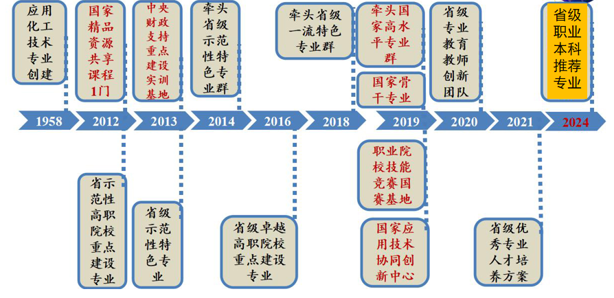 根植化工、积淀“化院魂”:专业始建于1958年,先后被评为省级示范特色专业、示范特色专业群牵头专业、国家高水平专业群牵头专业,累计向社会输送两万余名高素质技术技能型人才。