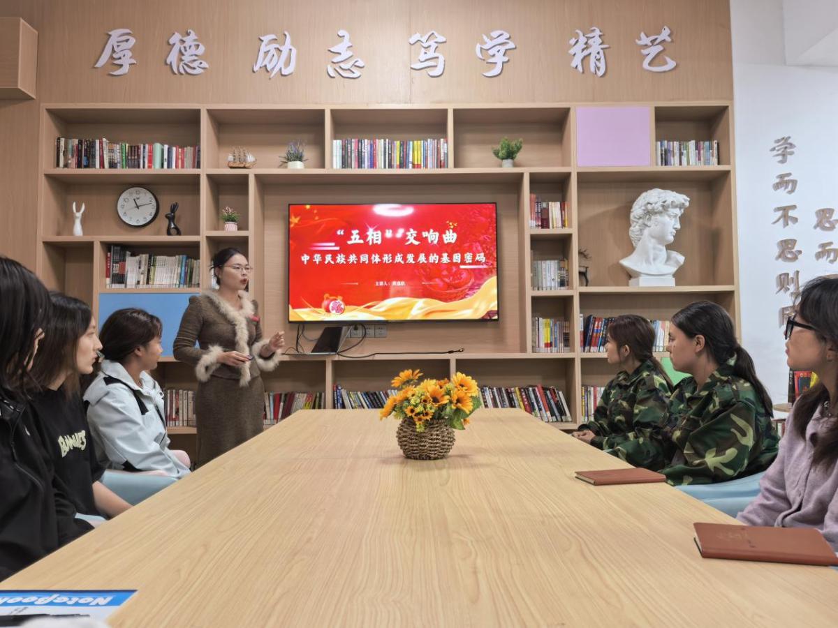 黄嘉欣老师通过系统化的理论阐述与图文并茂的PPT展示,系统阐释“五相”的内在逻辑与时代意义。在互动环节,同学们积极发言,表示可以通过多种形式切身感受“五相”的现实体现,如共跳锅庄舞,体现民族相交的融合氛围;分享特色美食,感受文化相融的深厚底蕴;协作完成团队游戏,展现情感相通的默契联结;政策咨询台现场服务,诠释利益相生的政策关怀;齐声高唱爱国歌曲,凝聚命运相连的共同情感。