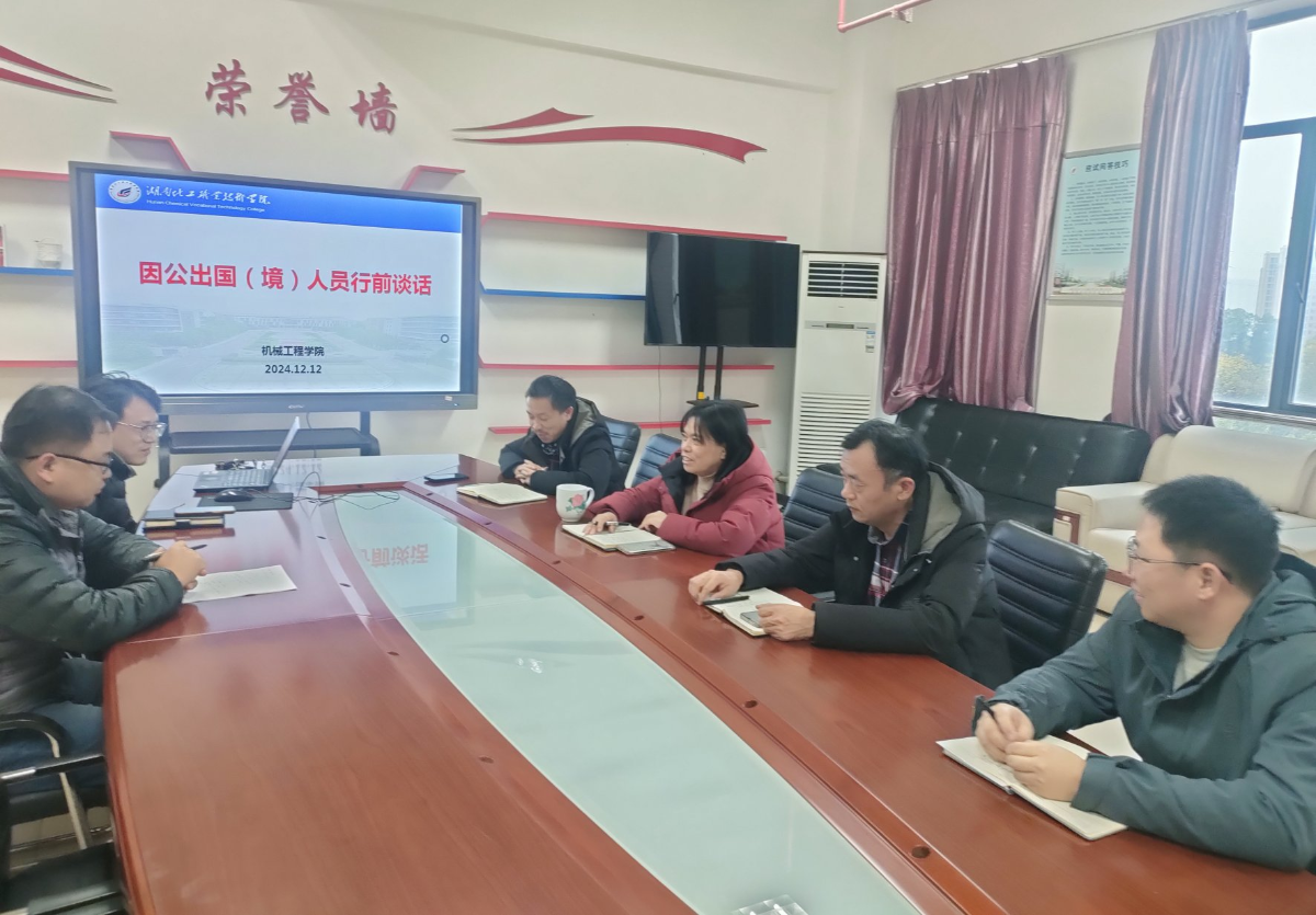 12月12日下午,机械工程学院在笃学楼317会议室召开因公出国(境)人员行前会议。学院领导班子成员和即将随企出海的张冠勇、肖芝老师参加会议。会议由机械工程学院院长向寓华主持。