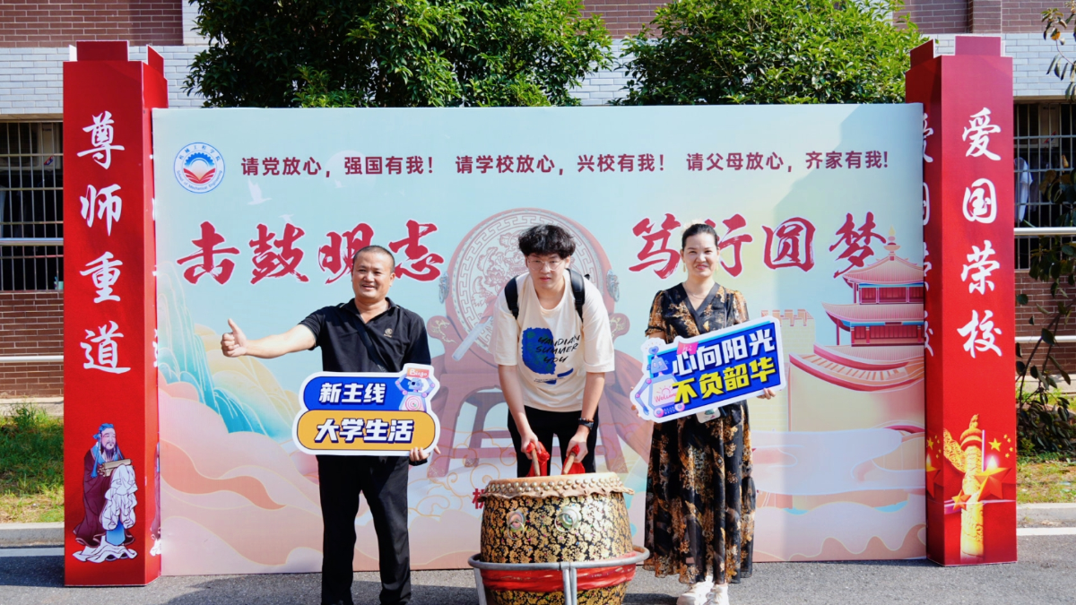 以鼓明志,激扬青春。在尚勤苑前坪,学院设立了报到打卡点,通过“击鼓明志”的传统仪式,激励新生们勇敢追梦。一击鼓请党放心,强国有我;二击鼓,请学校放心,兴校有我;三击鼓,请父母放心,齐家有我。以三鼓,振士气,迎接新挑战。