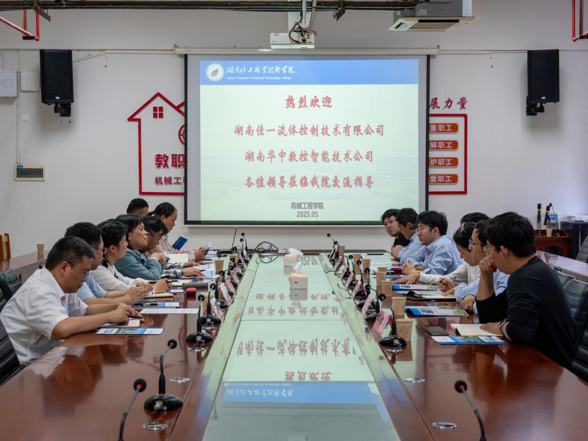 5月9日,湖南华数智能技术有限公司总经理王杰带领湖南佳一流体智控技术有限公司总经理黄志彬一行,深入机械工程学院,实地参观创新楼柔性智能制造产线。参观结束后,在笃学楼318室会议室展围绕数控技术专业、化工装备技术专业的校企合作、人才培养及产教融合等核心议题开深度洽谈。双方期望借此机会,不仅为湖南佳一公司公司扩大产能、购置华中数控设备提供决策依据,也为机械工程学院与湖南佳一公司在数控技术专业人才培养方面的深度合作打下坚实基础。