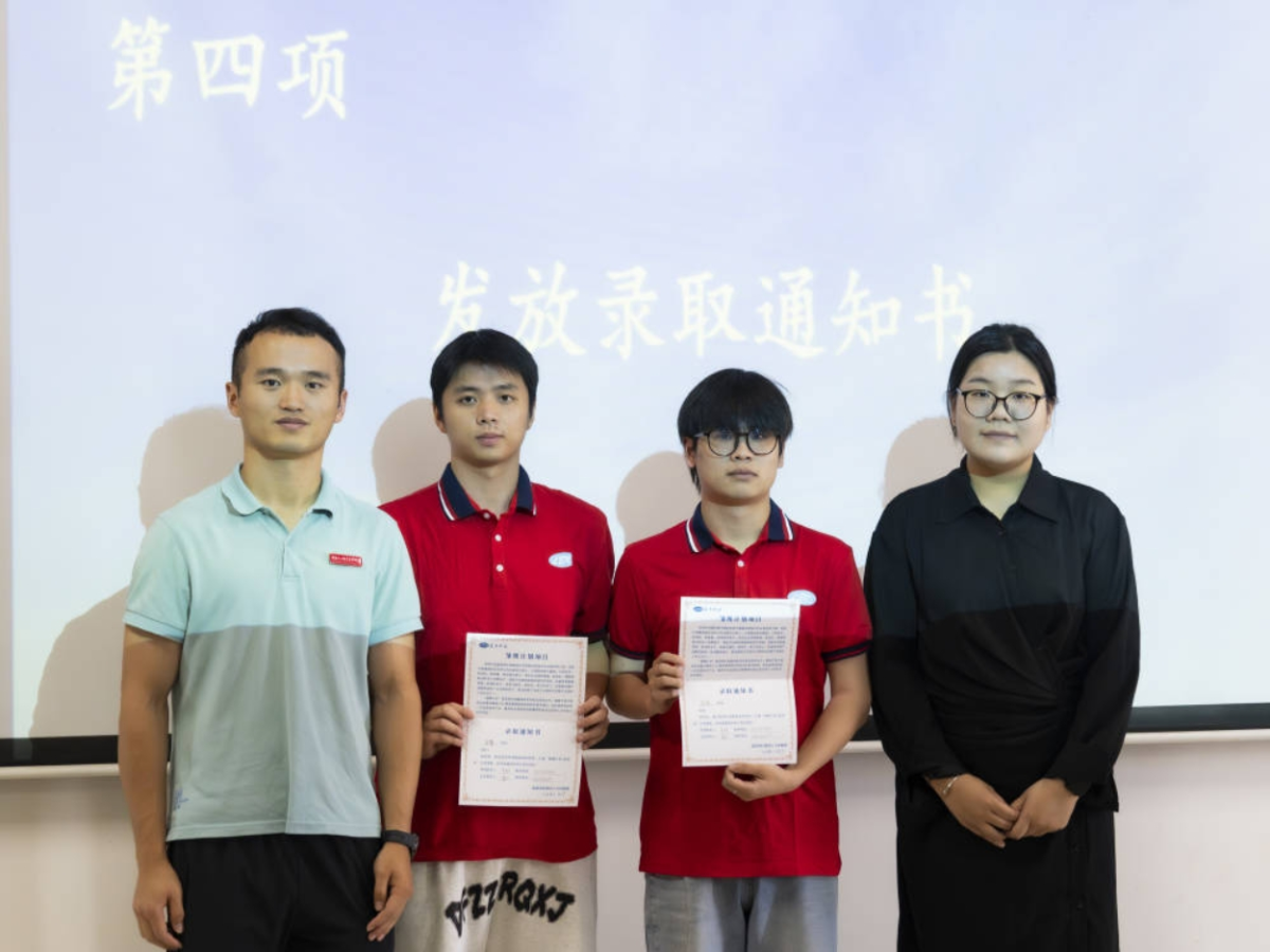 在授牌环节,柳科将“蓝思班”班牌郑重授予机械工程学院副院长孟少明。随后,龚丹与“蓝思班”班主任严朗共同为学生代表颁发录取通知书。学员代表翁宇鸿承诺:将以明确的学习目标为指引,秉持勤奋钻研的学习精神,积极参与企业实践,强化团队协作意识,努力成长为符合企业需求的优秀人才,不负学校与企业的殷切期望。