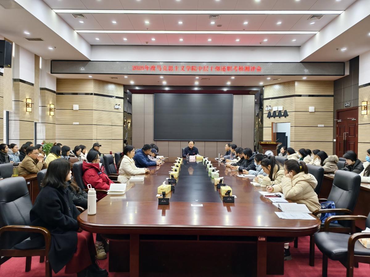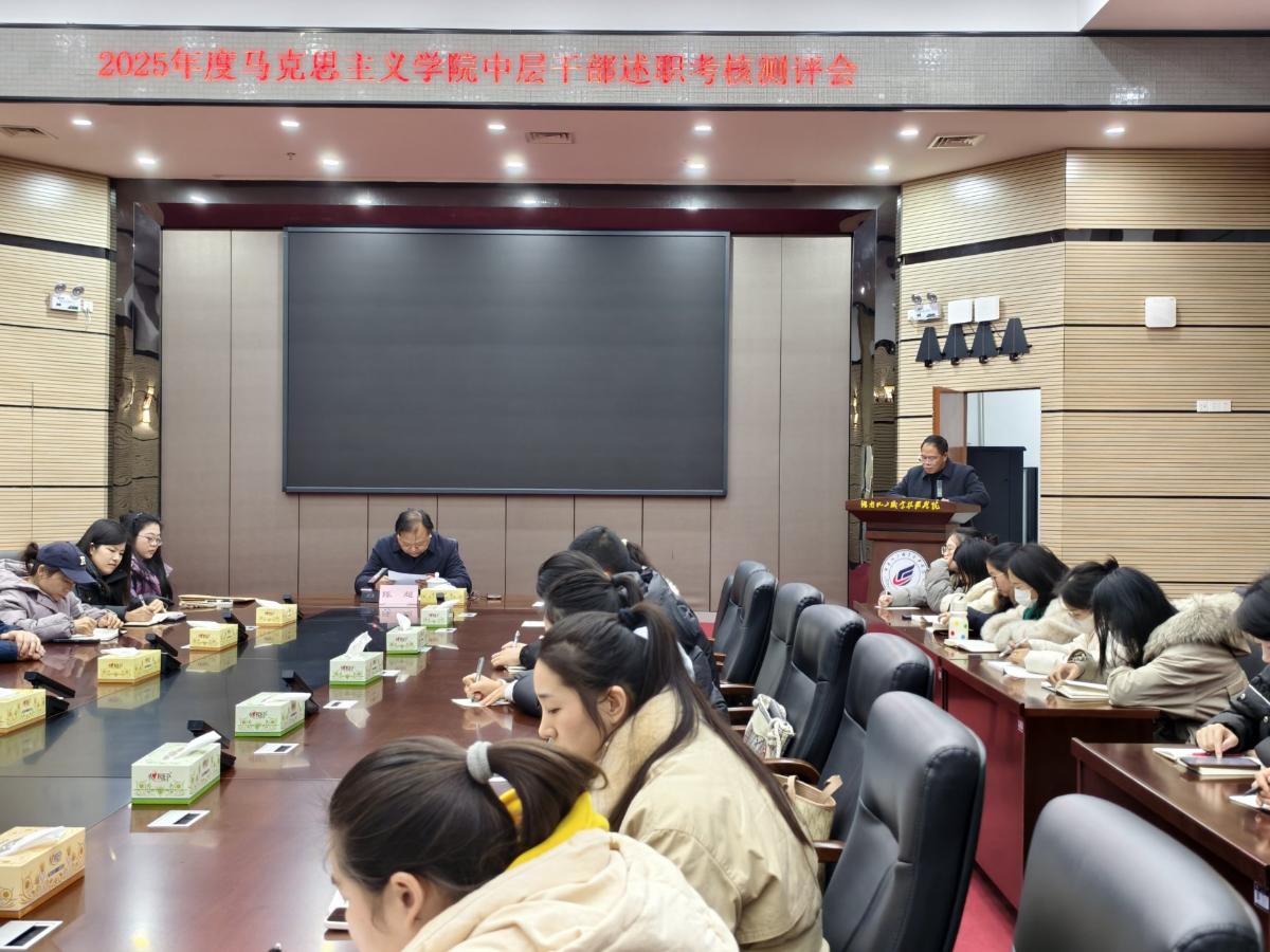2026年1月19日,马克思主义学院2025年度中层干部考核教职工测评会在上善楼110会议室召开。学校党委书记陈超亲自主持会议,学院全体教职工参会。