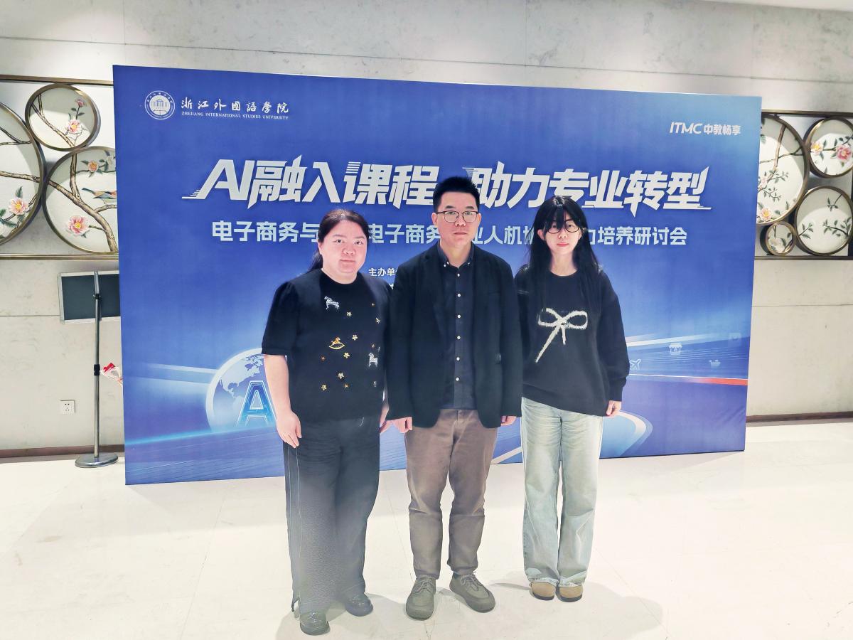 为深化电子商务与跨境电子商务专业建设,探索AI技术与课程融合的创新路径,11月7日至9日,商务贸易学院电子商务教研室主任唐迈与商务英语、电子商务专业专任教师张渺岚、王婧前往浙江杭州参加由中国商业联合会主办,浙江外国语学院等单位承办的“AI融入课程 助力专业转型——电子商务与跨境电子商务专业人机协同能力培养研讨会”。本次研讨会聚焦AI智能体技术与电子商务专业教育的深度融合,旨在培养师生人机协同能力,推动专业转型发展。