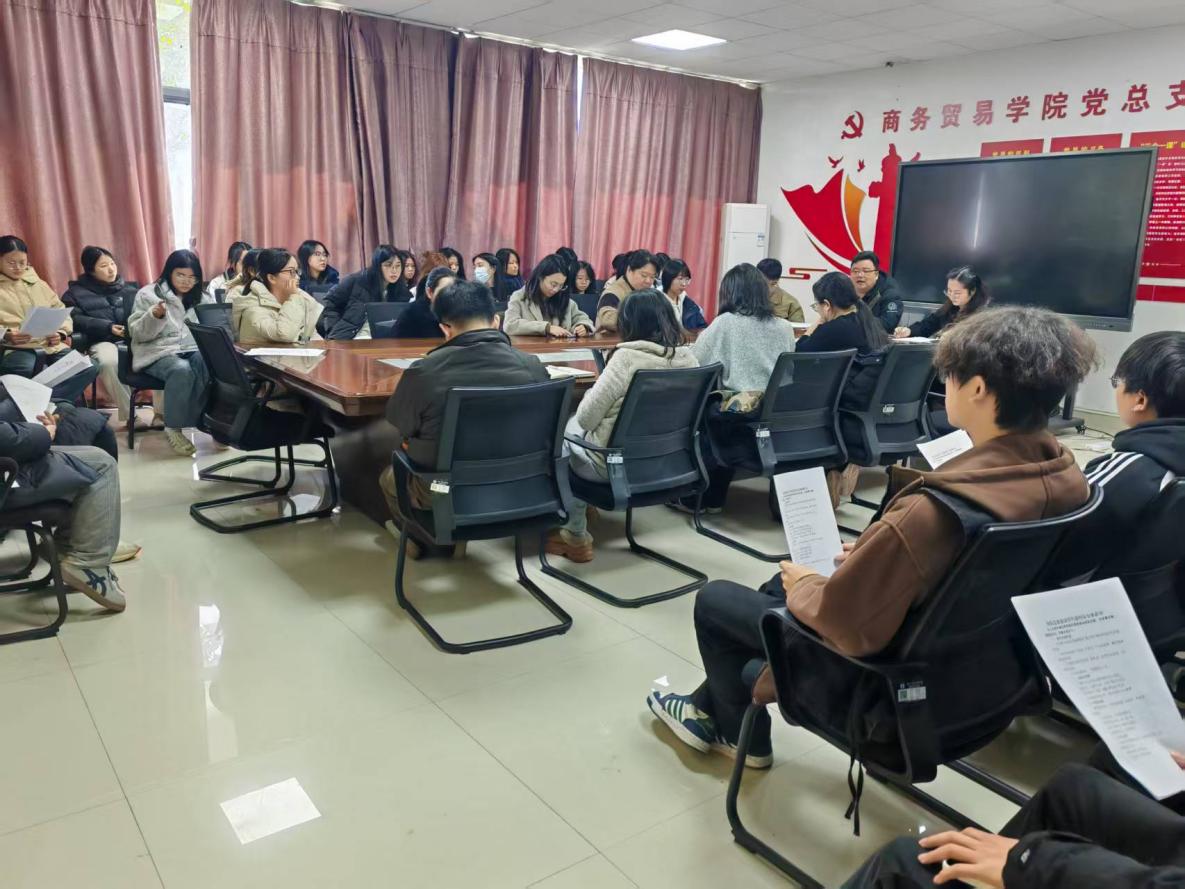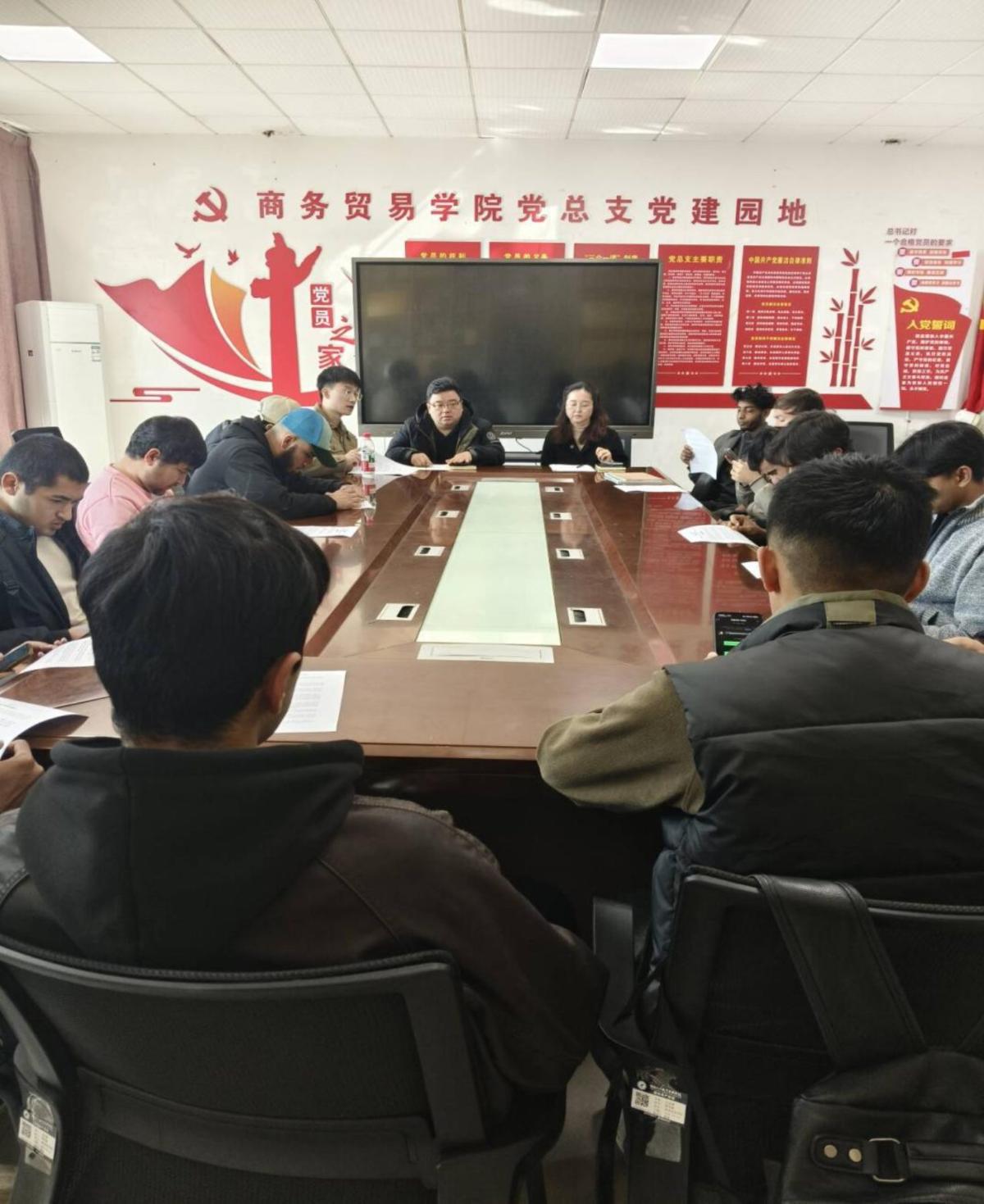 1月14日下午,商务贸易学院在励志楼136会议室组织召开寒假留校学生安全工作会议及“楚怡杯”职业技能竞赛寒假备赛动员部署会。学院党总支副书记温拥军、副院长何静出席会议,各赛项指导教师、留学生辅导员、寒假留校留学生以及30余名“楚怡杯”备赛学生共同参加。会议由温拥军主持。