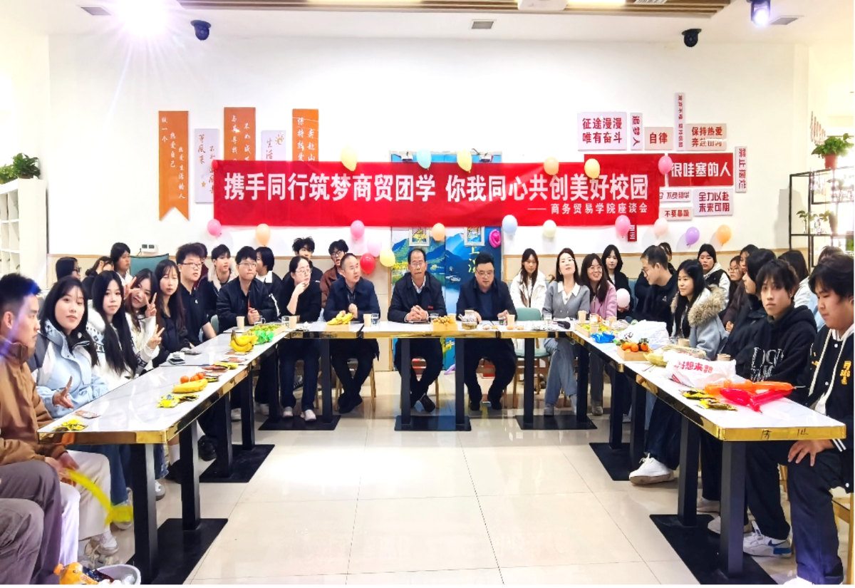 商务贸易学院于12月30日中午在青春畅想沙龙成功举办“携手同行筑梦商贸团学,你我同心共创美好校园”主题团建活动。学院党总支书记严可为、副院长兼副书记向林峰、副书记温拥军及全体专兼职辅导员、学生干部共同参与此次活动。