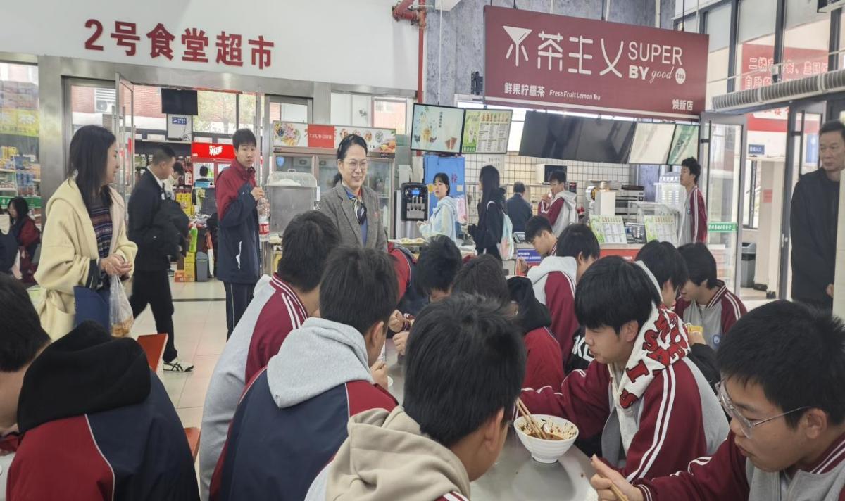 在听课评教之后,隆校长一行走进学生食堂,对食品原料采购、储存、加工及留样等关键环节进行了细致询问和检查。就餐时间,隆校长与学生们亲切交谈,耐心询问大家对饭菜口味、价格分量和服务态度的意见,并要求食堂管理部门严守食品安全底线,不断提升餐饮服务质量与满意度。