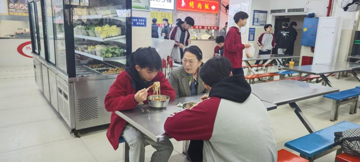在听课评教之后,隆校长一行走进学生食堂,对食品原料采购、储存、加工及留样等关键环节进行了细致询问和检查。就餐时间,隆校长与学生们亲切交谈,耐心询问大家对饭菜口味、价格分量和服务态度的意见,并要求食堂管理部门严守食品安全底线,不断提升餐饮服务质量与满意度。