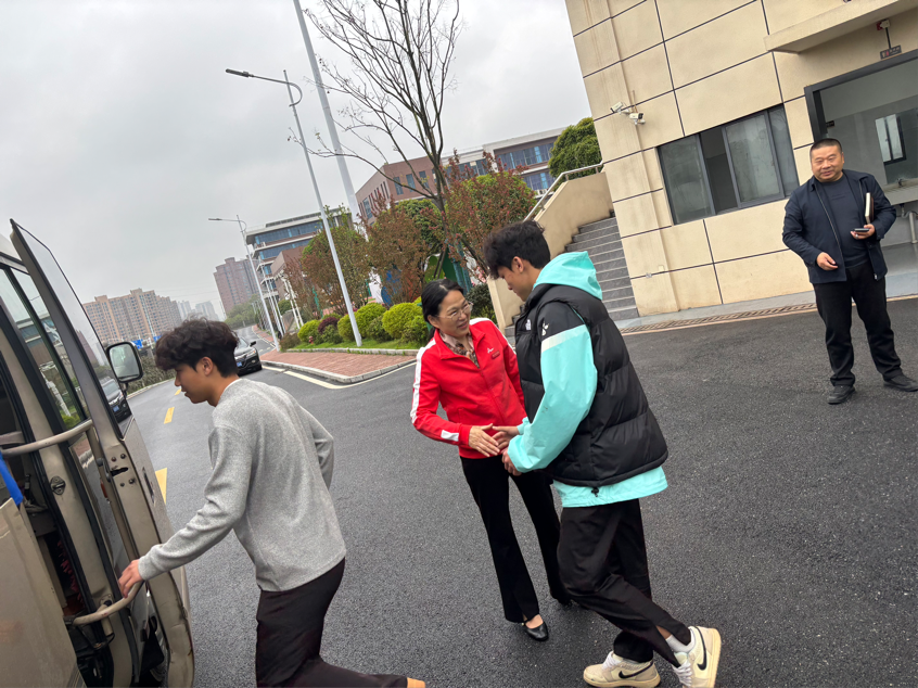讲话结束后,隆平校长逐一与运动员亲切握手,传递学校关怀与祝福,随后目送队员们踏上征程。此次出征仪式,既为球队注入了精神动力,也彰显了学校对校园体育事业的高度重视,祝愿全体健儿在赛事中奋勇争先、再创佳绩,为学校争光添彩。