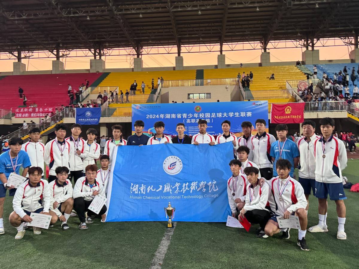 11月3—11日,“2024届湖南省青少年校园足球大学生联赛”在湖南铁路科技职业技术学院和湖南化工职业技术学院举行。男子组有14个参赛队伍近300多名运动员参加。我校足球队在领队罗华平,主教练王迎胜、李俊霖,队医丁玉旭的带领下共派出24名队员参赛,经过8天的激烈角逐,最终荣获本次比赛男子组的季军。