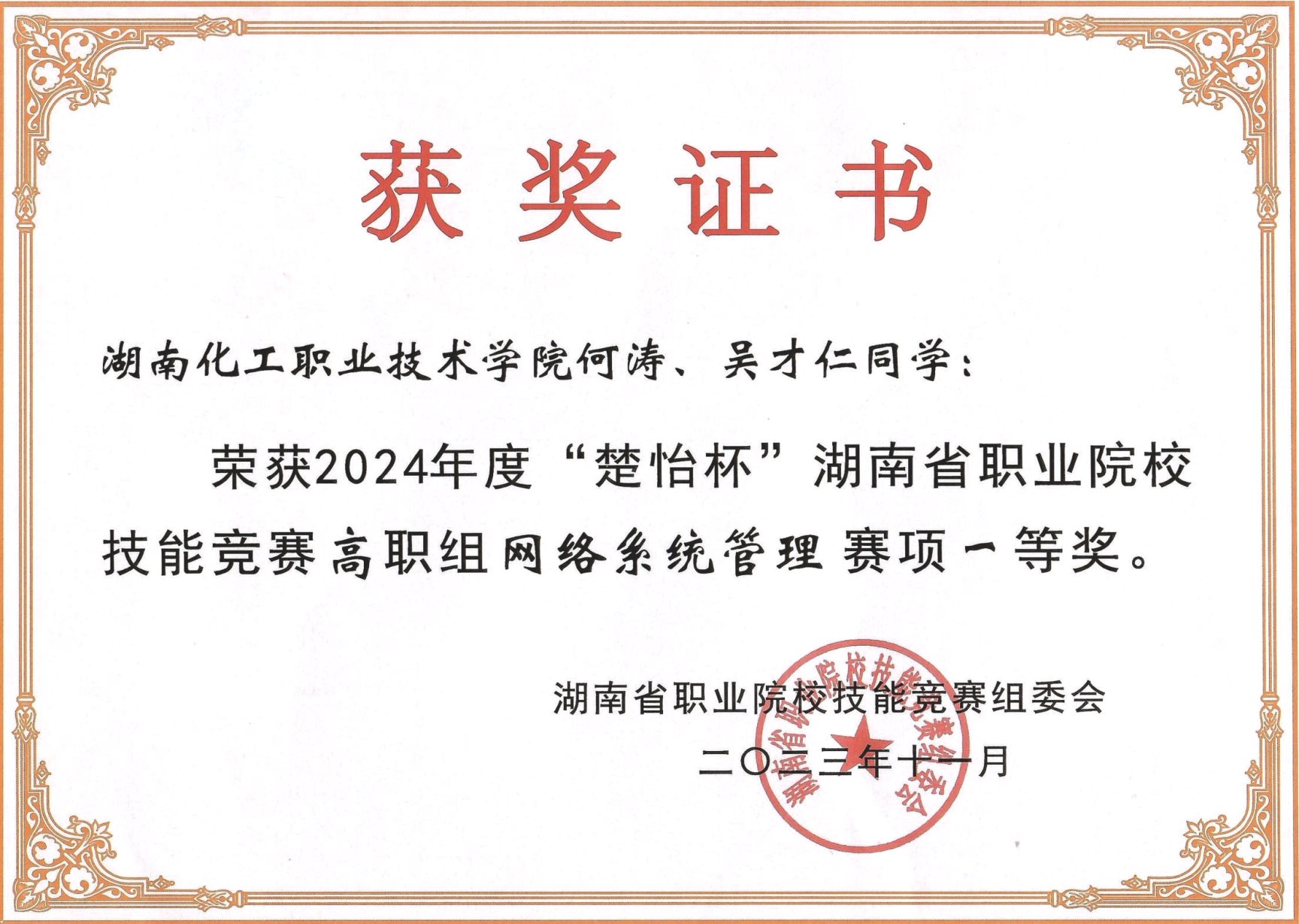 2024年度"楚怡杯"湖南省职业院校技能竞赛一等奖