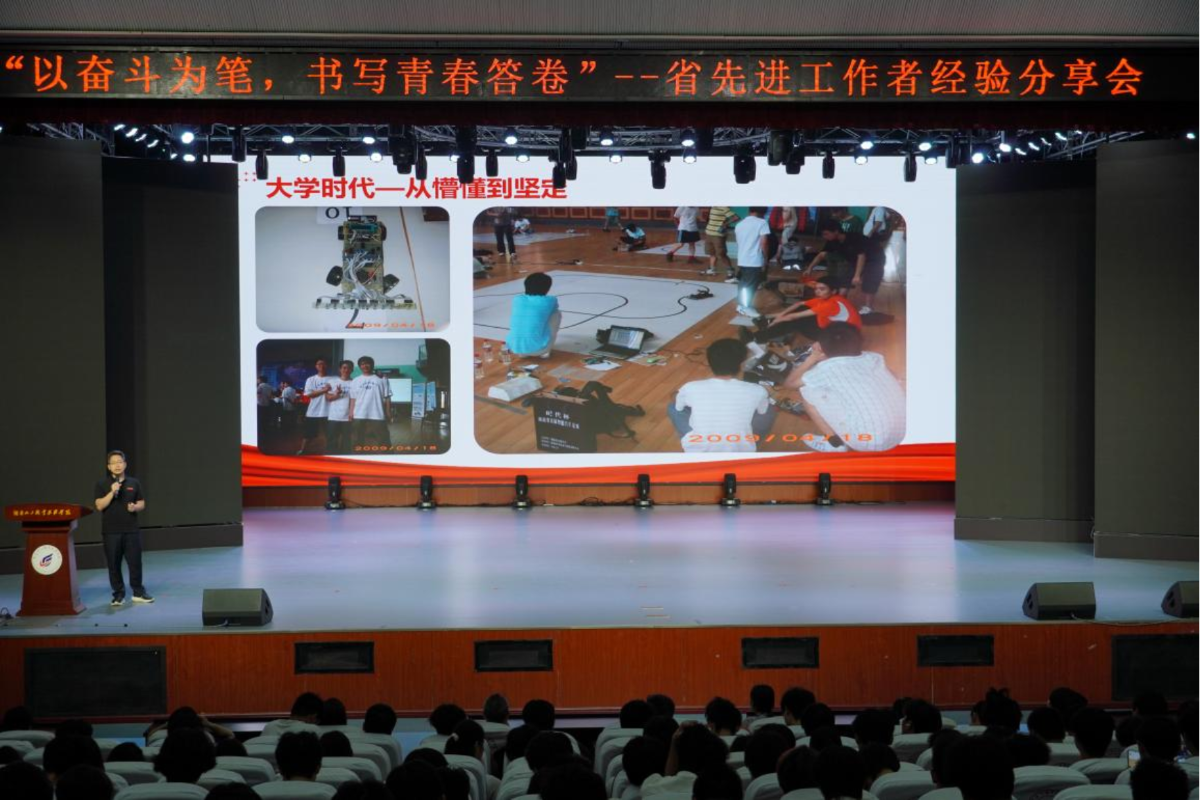 刘志芳老师分别从大学时代的兴趣培养、初入职场的勇于担当和入职高校的争创佳绩三个方面,分享了自己的成长故事,他从投入培养兴趣、信念铸就成功、奋斗成就梦想三个方面分享了自己的个人感悟,勉励大家积极投入学习、培养兴趣爱好、坚定成功信念、实现心中梦想。他号召广大学子勇担青春责任,在实现中华民族伟大复兴的中国梦的生动实践中放飞青春梦想。并从有理想、敢担当、能吃苦、肯奋斗四个方面阐述新时代好青年的标准,最后寄语广大学子要相信自己、勇敢追梦,只要坚持努力、敢于奋斗,就能在人生的舞台上绽放自己的光彩。