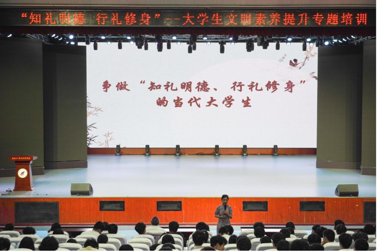 6月5日,现代信息工程学院于学校大礼堂举行了“知礼明德 行礼修身——大学生文明素养提升”专题培训。学院班子成员、全体科级干部及专职辅导员出席了本次活动。学院2023级、2024级近千名学生参加本次培训。活动由副院长侯小毛主持。