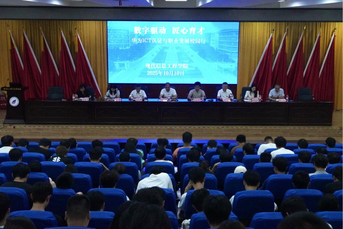 10月10日上午,“数字驱动 匠心育才——华为ICT认证与职业发展校园行”在学校图书馆二号报告厅成功举行。华为湖南办负责人许世勇,华为ICT项目代表高志康、聂翠、邓红超,现代信息工程学院班子成员、教师代表和相关专业学生参加了此次活动。