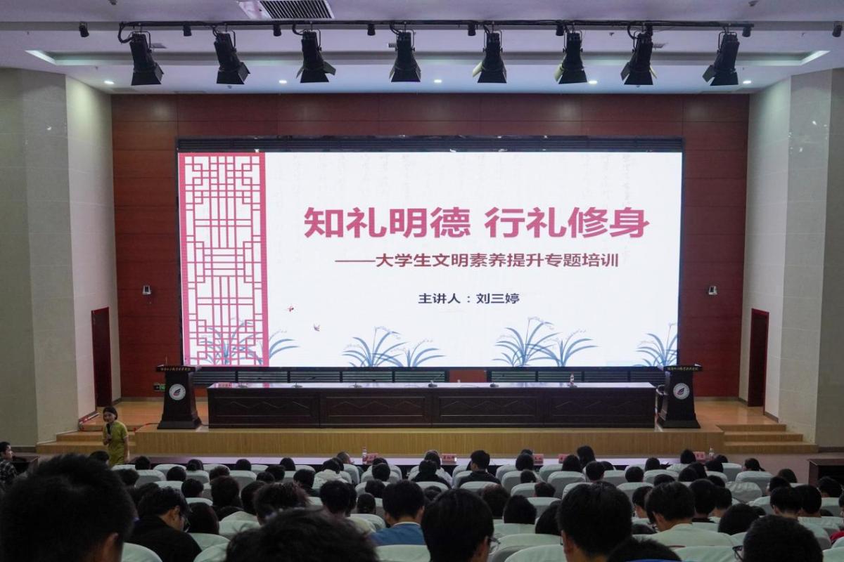 随后,刘三婷先后进行了以“全民反诈,平安校园”为主题,以“知礼明德,行礼修身”为主题的两场专题讲座。她结合近期高校频发的诈骗真实案例,深入浅出地讲解了“刷单诈骗”“冒充客服”“AI诈骗”等常见电诈手段,提醒同学们提高警惕,增强防范意识,共同筑牢校园反诈防线。在文明素养提升环节,她从课堂纪律、仪容仪表、言行举止等方面进行详细讲解,明确提出大学生从点滴做起,从小事做起,让文明成为一种习惯、一种风尚。