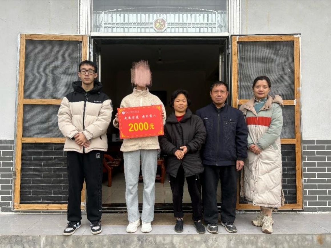 1月9日上午,现代信息工程学院党总支副书记刘三婷、辅导员王群、苏睿等一行三人带着慰问物资和慰问金,走进湘潭昭山镇猪婆塘村,开展假期走访慰问学院困难学生活动,为家境贫寒的刘同学送去了冬日里最真挚的关心和爱护。