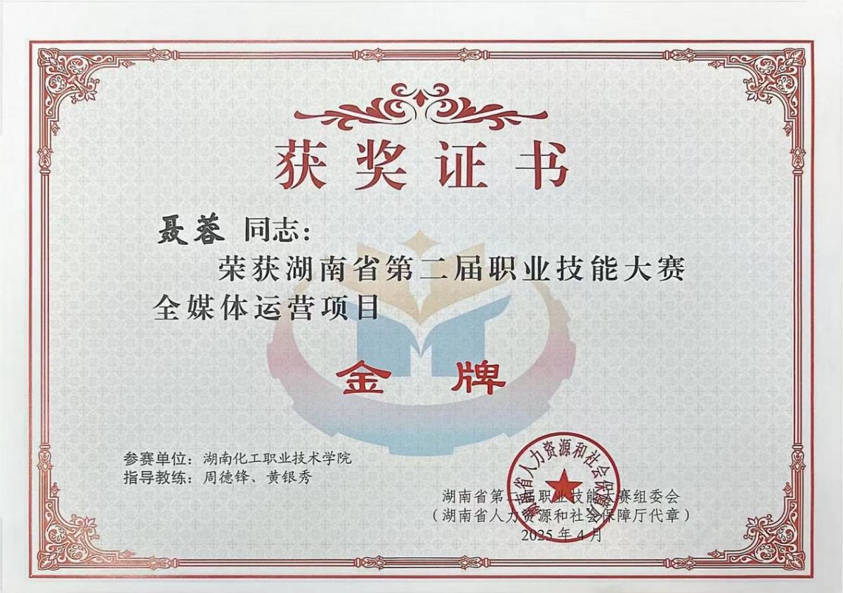 湖南省第二届职业技能大赛全媒体运营项目金牌