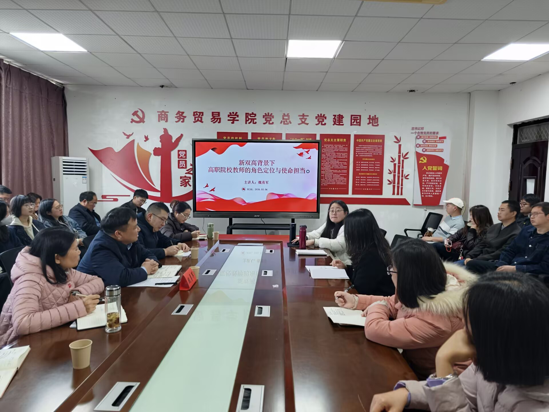 3月6日上午,商务贸易学院召开新学期全体教师工作会议,副校长魏勇军教授受邀作《“新双高”背景下高职院校教师的角色定位与使命担当》专题培训,院长莫兼学主持。