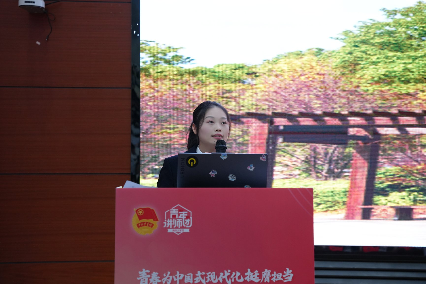 宣讲会上,株洲市南方中学教师、团委副书记肖敏行,以《从天山脚下到湘江之滨——一名西部发展亲历者与党的二十届四中全会的约定》为题宣讲。他曾远赴新疆求学,在支教中见证民族情谊,通过助农直播助力乡村振兴,深刻体悟铸牢中华民族共同体意识的内涵。在株洲参加工作后,他结合“中国动力谷”的发展实践,解读新质生产力的时代意义,鼓励青年立足专业、锤炼本领,将个人成长融入国家发展大局,以坚韧与创新书写青春答卷。