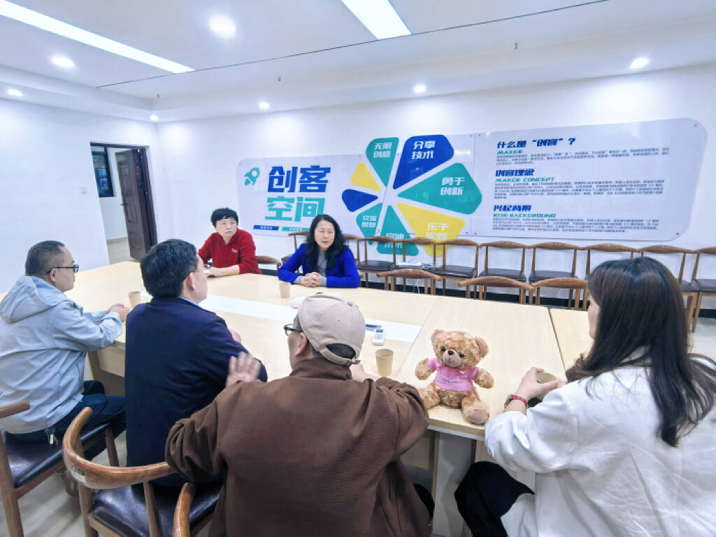 随后,双方进行了座谈交流。刘艳对尹平宝一行的到访表示热烈欢迎,并简要介绍了我校近年来在创新创业教育方面的总体布局与建设成效。双方围绕基地建设、课程建设及创业政策落地措施等主题展开了深入交流。