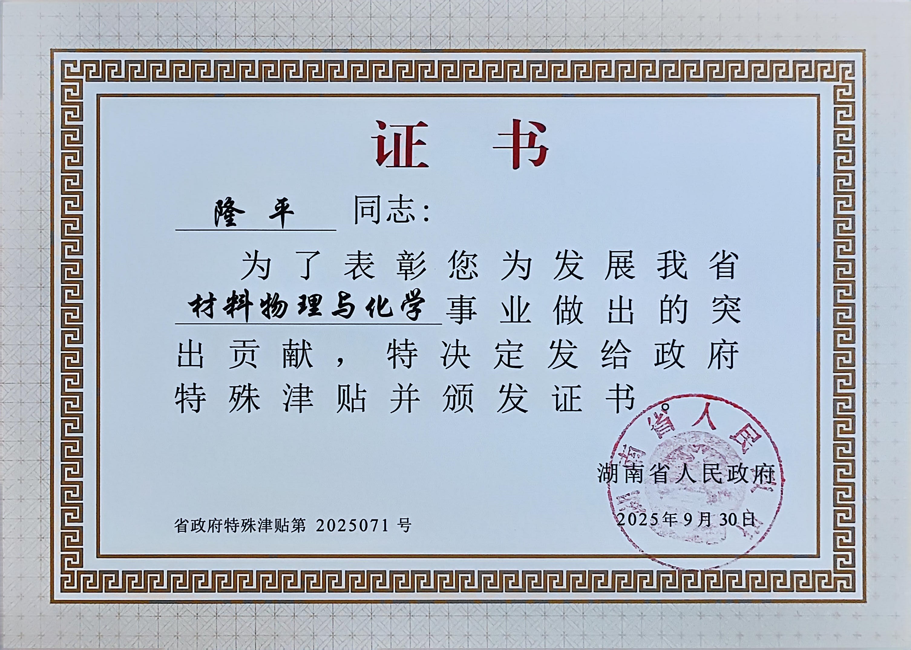 ——我校两名教师荣获第七届湖南省政府特殊津贴