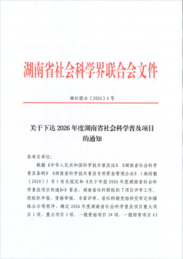 根据湖南省社会科学界联合会于4月24日印发的《关于下达2026年度湖南省社会科学普及项目的通知》,我校食品与烹饪技术学院院长盛金朋主持申报的项目《“舌尖上的非遗·厨房里的健康”——“减盐减油”湘菜科普活动》成功入选2026年度湖南省社会科学普及项目一般资助项目,这标志着学校在服务“健康湘菜”省级行动计划及“健康中国”国家战略上迈出了坚实的一步。