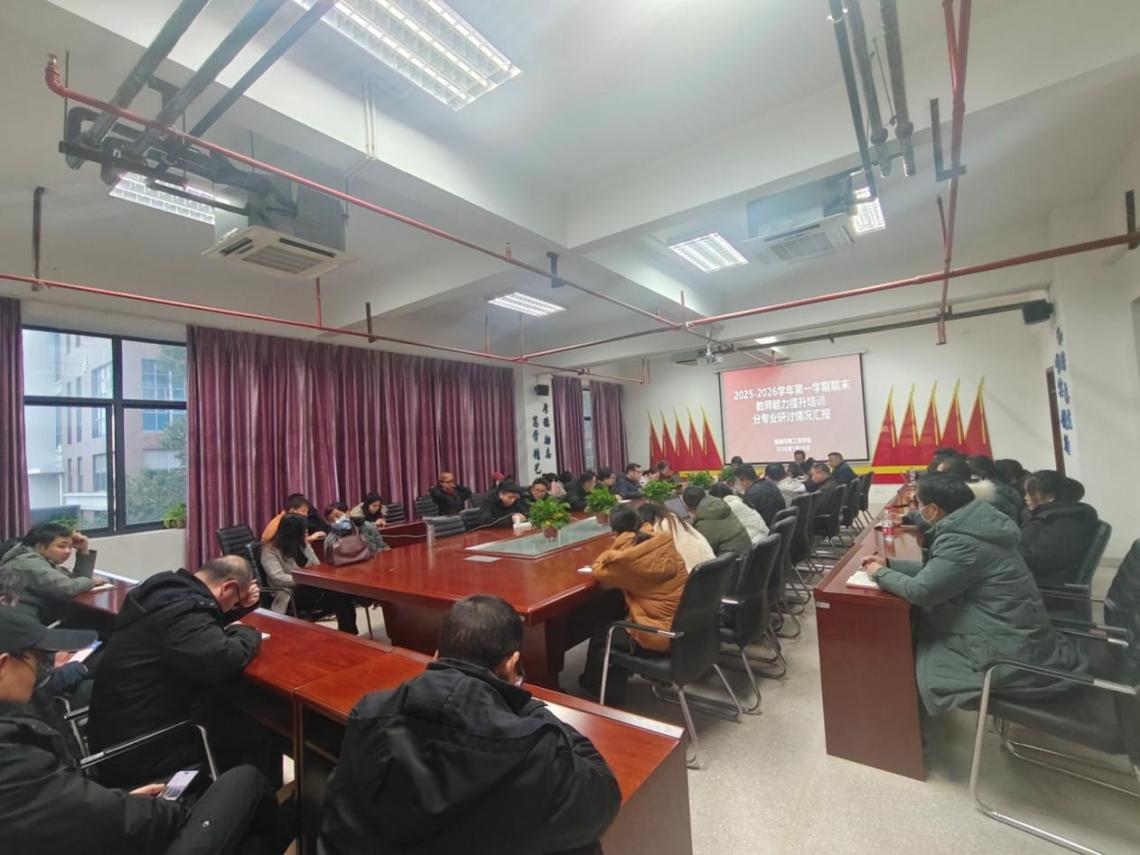 1月9日下午,基于学校2025-2026学年第一学期末教师能力提升培训的学习成果,智能控制工程学院在笃学楼207会议室开展了分专业研讨汇报活动,围绕职业本科创建和国家双高计划建设发展要求,从探索五金建设、数字化转型、产教融合、教学科研等方面展开。本次活动采用分专业研讨与集中汇报相结合的形式,由二级学院院长聂辉文主持、全体教职工参与,覆盖工业机器人技术、工业过程自动化技术等六大专业,同步开展实训室建设规划及辅导员工作交流,为新学期教育教学工作筑牢根基。