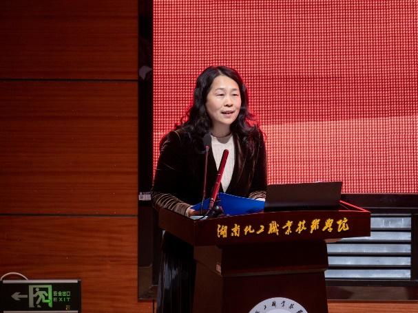 湖南化工职业技术学院党委委员、副校长刘艳出席活动并致辞。她代表学校向返回母校的优秀校友表示热烈欢迎。刘艳指出,当前湖南正全力打造大学生创新创业高地,省委省政府出台了一系列重磅支持政策,为青年学子搭建了广阔的追梦舞台。学校持续深化教育教学改革,将创新创业教育贯穿人才培养全过程,致力于为学生提供从知识学习到产业实践的全链条支持。她勉励同学们珍惜时代机遇,从优秀校友企业家的创业故事中汲取“敢闯会创”的魄力、“扎根成长”的耐力与“借势而起”的智慧,在湖南这片热土上书写属于自己的精彩篇章。