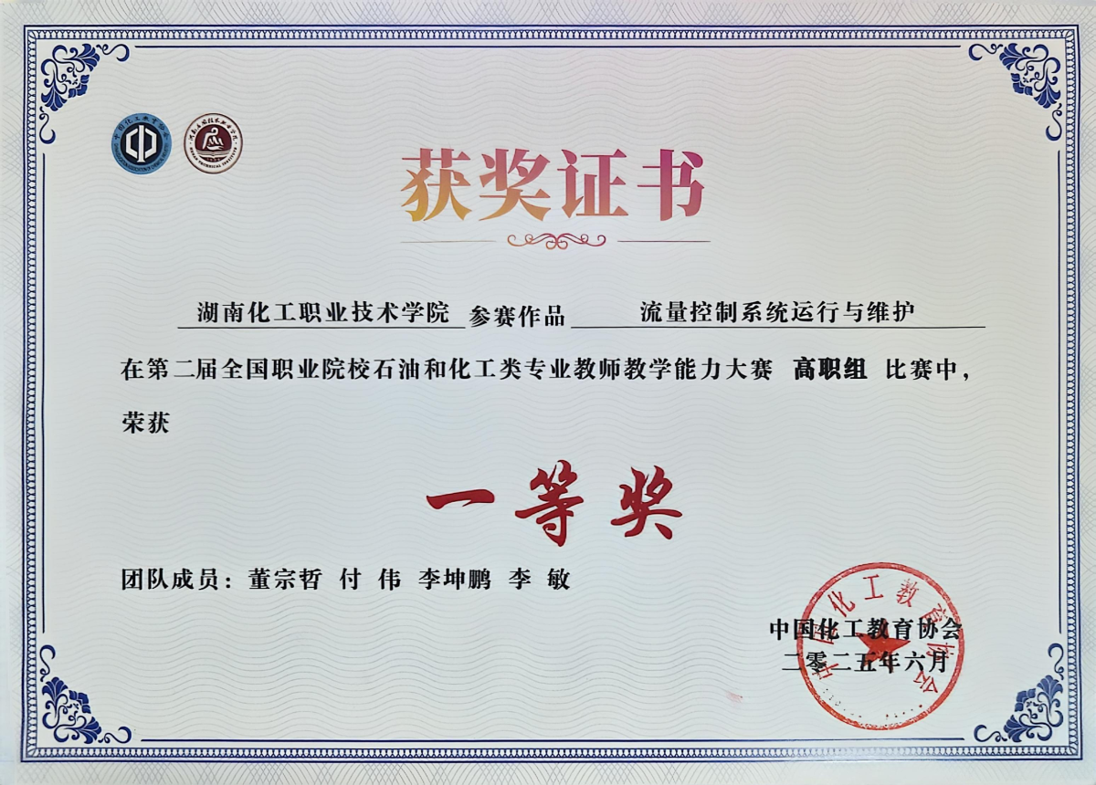 2025年第二届全国职业院校石油和化工类专业教师教学能力大赛一等奖 |