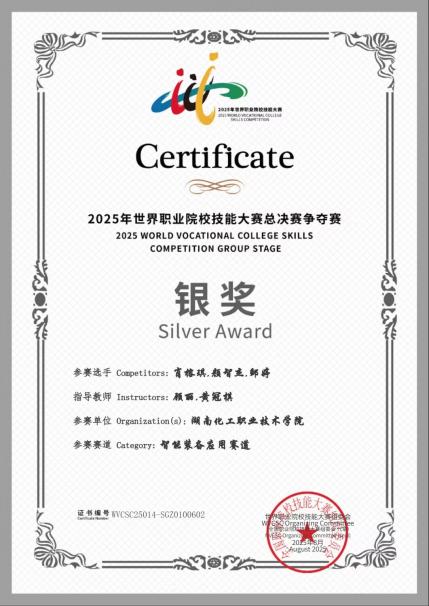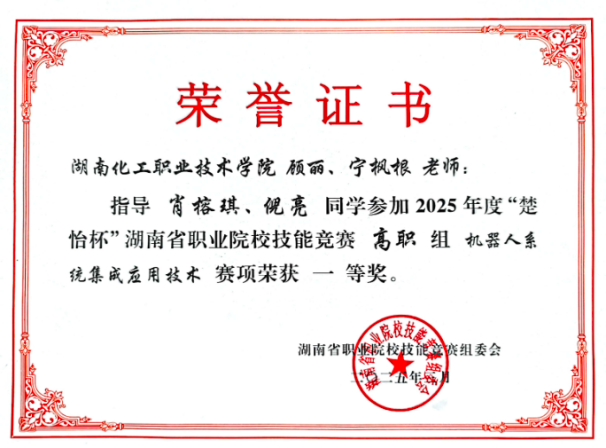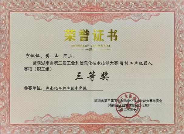 湖南省第三届工业和信息化技术技能大赛“智能工业机器人赛项”赛项三等奖 |