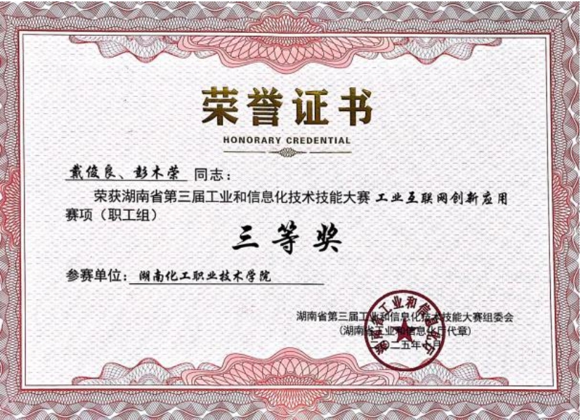 湖南省第三届工业和信息化技术技能大赛“工业互联网创新应用”赛项三等奖 |