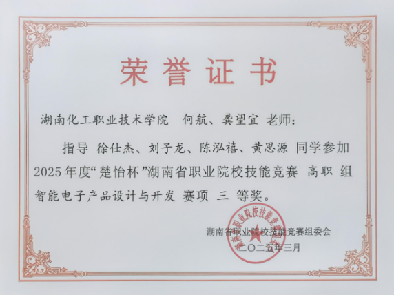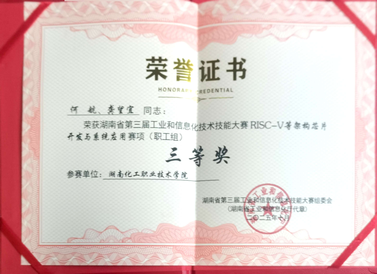 湖南省第三届工业和信息化技术技能大赛--RISC-V等架构芯片开发与系统应用赛项三等奖 |