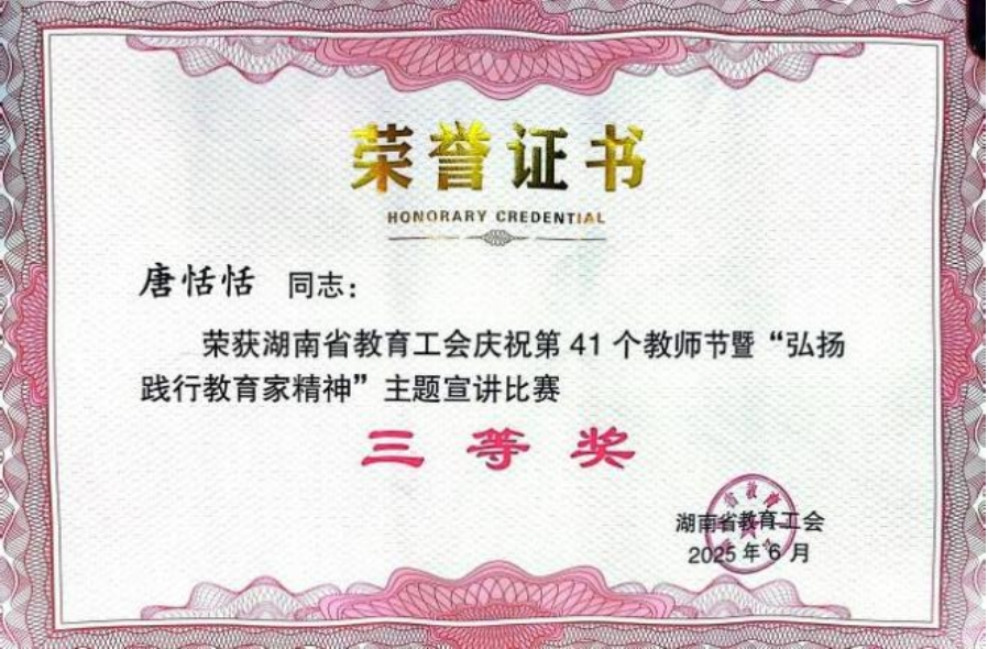 湖南省庆祝第41个教师节暨“弘扬践行教育家精神”主题宣讲省三等奖 |
