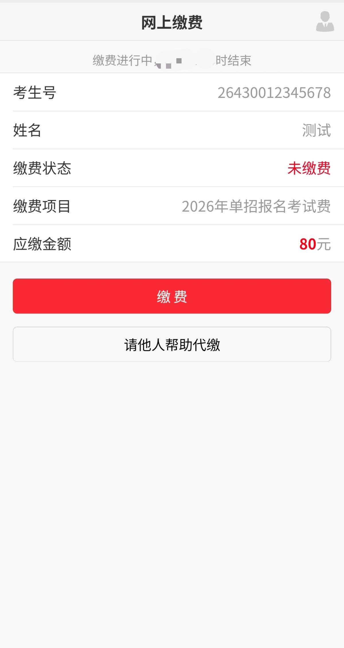 网上缴费提供两种方式,一种方式是使用自己的微信号进行支付,另一种方式可请他人帮助代缴。