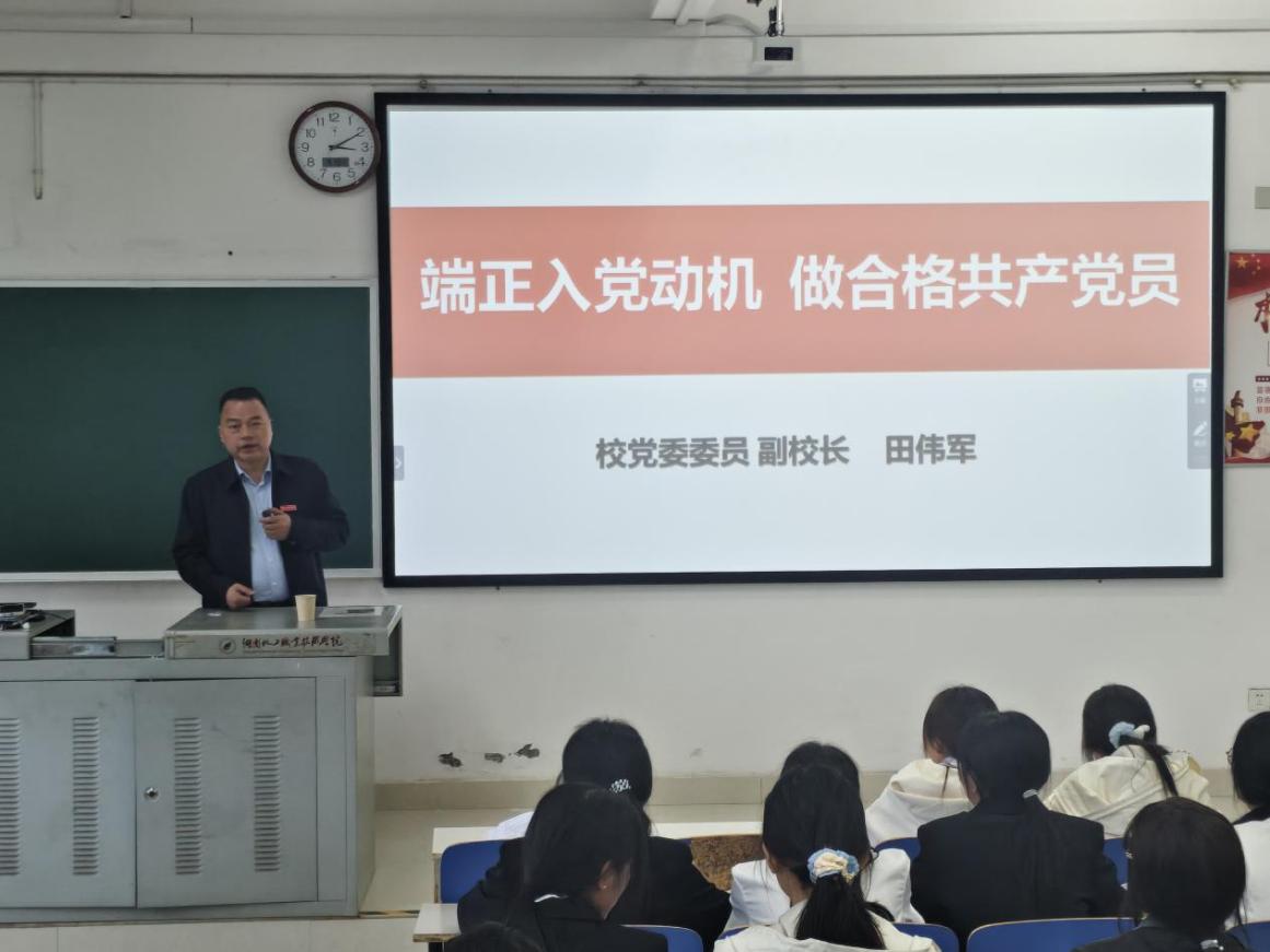 4月14日下午,学校党委委员、副校长田伟军教授在厚德楼217以《端正入党动机 做合格党员》为题,为制药与生物工程学院2026年第一期入党积极分子培训班全体学员讲授专题党课。